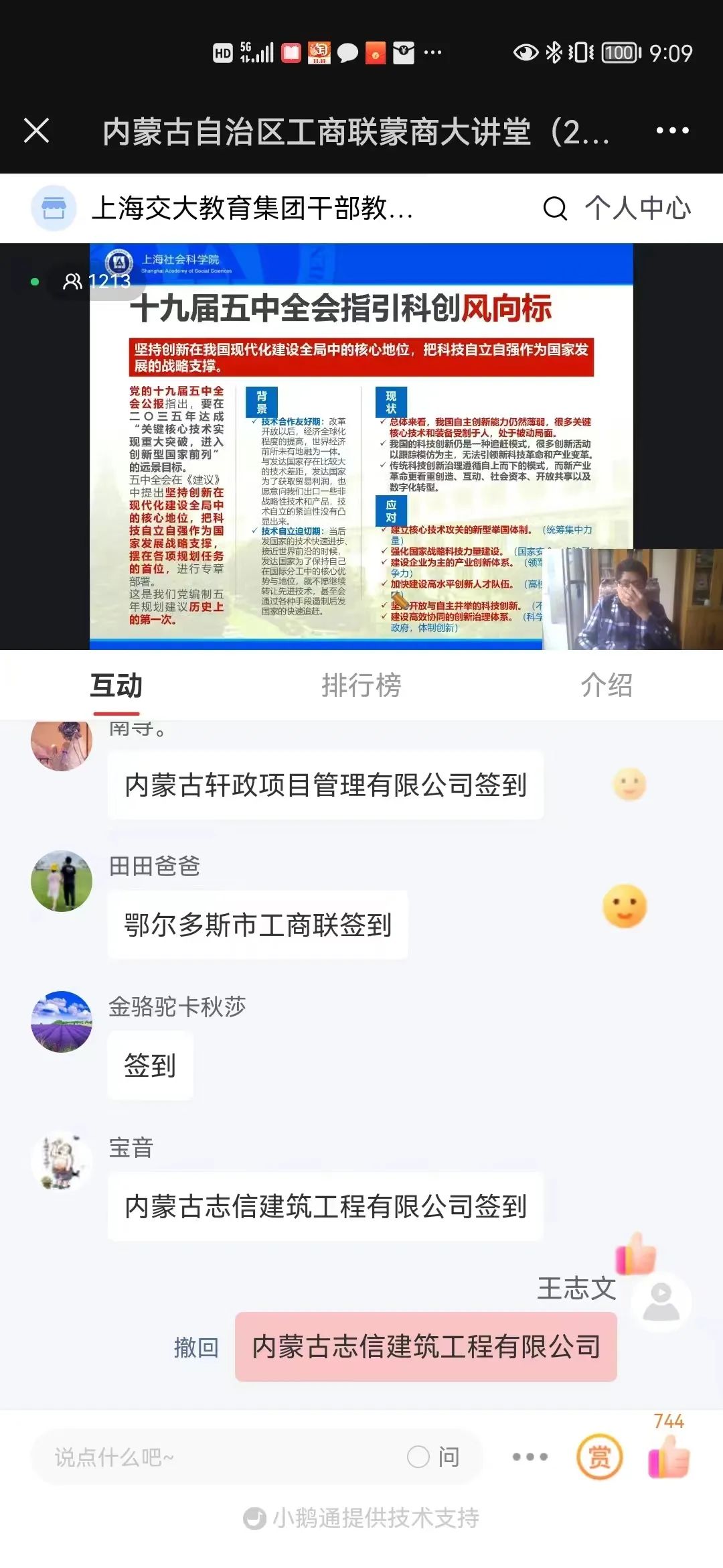 11月10日上午,內(nèi)蒙古志信建筑工程有限公司組織全體黨員、入黨申請人積極學習內(nèi)蒙古自治區(qū)工商聯(lián)蒙商大講堂第十一期,本期講座課題是《深刻理解領(lǐng)會二十大關(guān)于科技是第一生產(chǎn)力、人才是第一資源、創(chuàng)新是第一動力的思想實質(zhì)》,由上海社會科學院區(qū)縣研究中心主任、產(chǎn)業(yè)經(jīng)濟學博士陳建勛博士進行主講,他長期從事產(chǎn)業(yè)經(jīng)濟學及區(qū)域規(guī)劃研究。高度的概括、言簡意賅的闡述,深刻的解讀,圖文并茂的講解,紛紛表示豁然開朗。