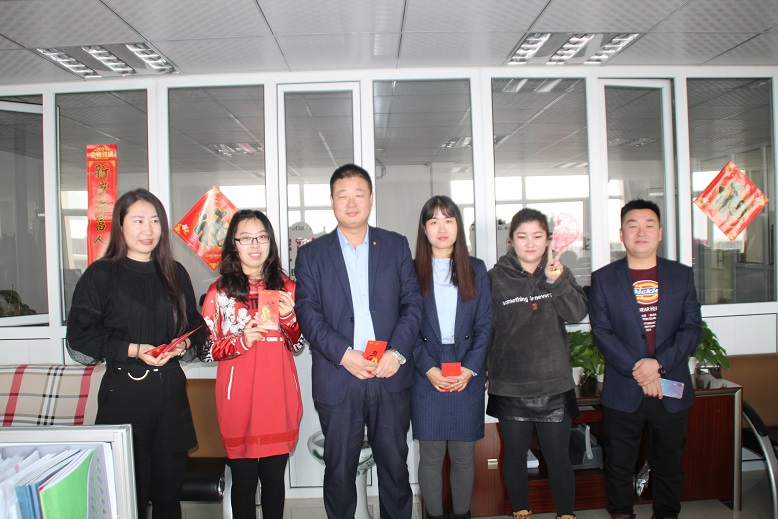 新年伊始,2019年2月12日公司正式上班第一天,為體現(xiàn)公司黨支部、工會及董事會“以人為體”的管理理念,公司為在職員工發(fā)放新年福利,董事長親手把紅包發(fā)放到每一位在職員工手中,并祝大家新年快樂。